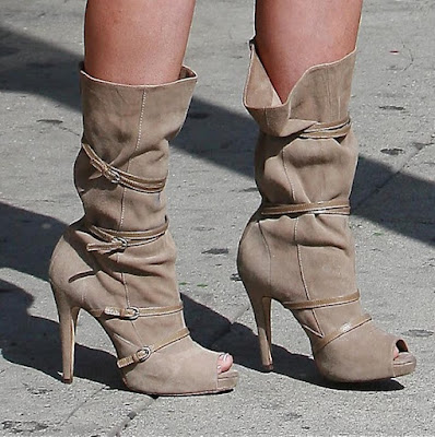 Sophie's boots are the Boutique 9 Redcarpet Dress boots - they were available in Sophie's taupe suede at endless.com, costing $139.24, but sold out and now only have a dark grey leather style left.Pics from Photo Agency